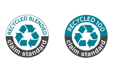 Woven labels made of 100% recycled polyester yarn(from post-consumer PET bottles), white, disperse dyed:printed labels made of100% recycled polyester woventape (from post-consumer PET bottles), taffeta tapeand tearable tape in off-white, bleached, white, orpiece-dyed; with or without acrylic, PU or PA coating.printed in white, black and red (produced usingcomponents partly pre-certified according to OEKO.TEX® STANDARD 100 and ECO PASSPORT)